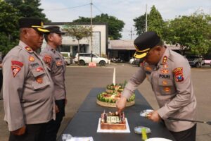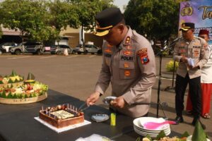 Perayaan ditandai pemotongan tumpeng dan penyerahan simbolis kepada perwakilan anggota. Suasana berlangsung hangat dan cair, menampilkan sisi humanis institusi kepolisian di tengah rutinitas tugas yang kerap padat dan penuh tekanan.