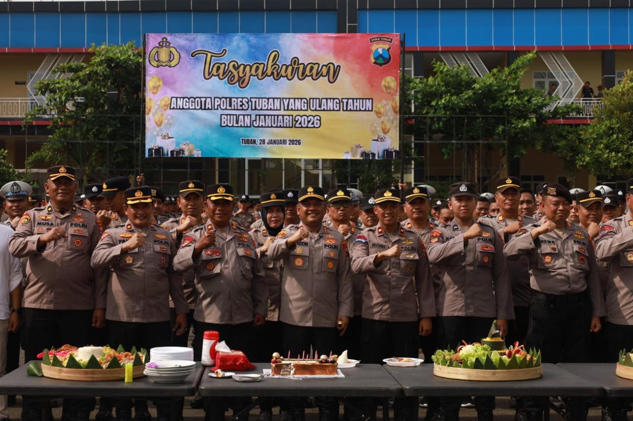Tuban, Ronggolawe News – Polres Tuban memilih cara sederhana namun bermakna untuk merawat ikatan batin antaranggota. Usai apel pagi, Rabu (28/1/2026), Kapolres Tuban AKBP Alaiddin, S.H., S.I.K., M.H., memberikan kejutan ulang tahun kepada personel yang lahir pada bulan Januari.