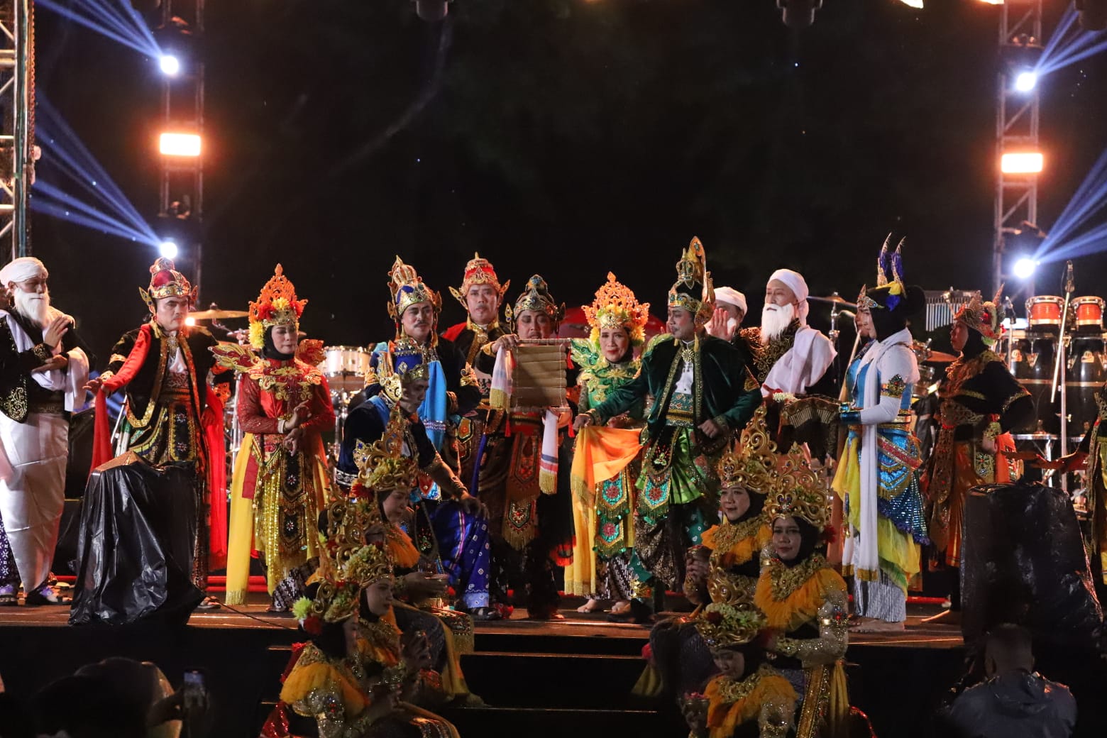 Kolaborasi tersebut diperkuat dengan lantunan paduan suara Gema Nada Abdi Praja, alunan karawitan, permainan cahaya, hingga pesta kembang api yang menggetarkan langit Tuban.
