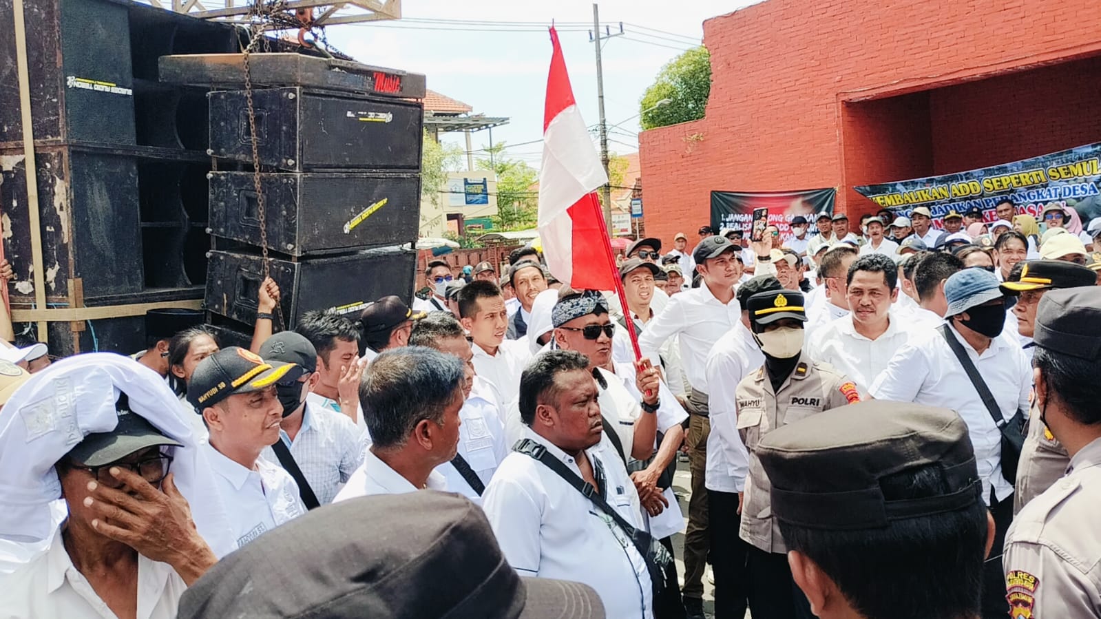 Aksi yang berlangsung sejak pagi ini disebut sebagai bentuk peringatan serius kepada Pemkab Mojokerto. Tidak hanya sekadar unjuk rasa, para pamong desa secara terbuka menyampaikan ancaman politik, administratif, hingga fiskal apabila tuntutan mereka kembali diabaikan.