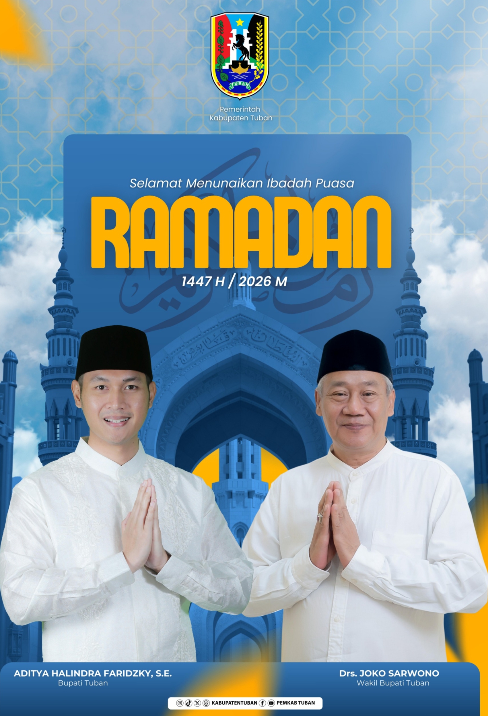 Tuban, Ronggolawe News – Pemerintah Kabupaten Tuban merilis poster resmi ucapan Selamat Menunaikan Ibadah Puasa Ramadan 1447 Hijriah/2026 Masehi sebagai bentuk ajakan kepada masyarakat untuk menyambut bulan suci dengan semangat kebersamaan dan penguatan nilai-nilai spiritual.