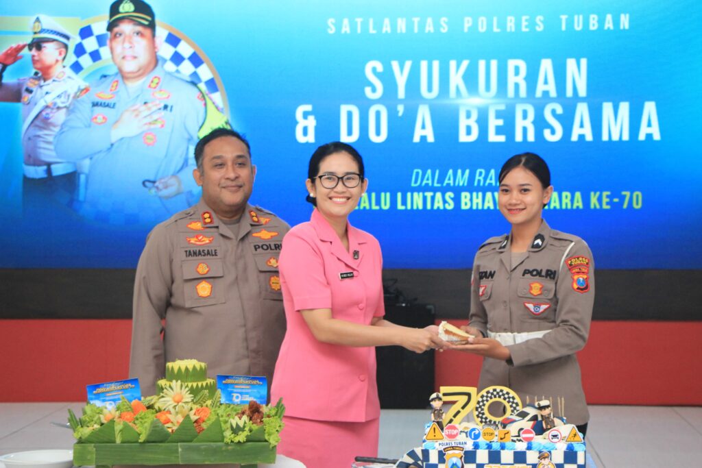 Acara ini dihadiri Kapolres Tuban AKBP William Cornelis Tanasale, S.I.K., Ketua Bhayangkari Cabang Tuban, pejabat utama, serta seluruh anggota Satlantas. Prosesi diawali dengan pemotongan tumpeng oleh Kapolres Tuban yang kemudian diserahkan kepada Kasat Lantas dan anggota termuda Satlantas sebagai simbol regenerasi dan pengabdian berkelanjutan.