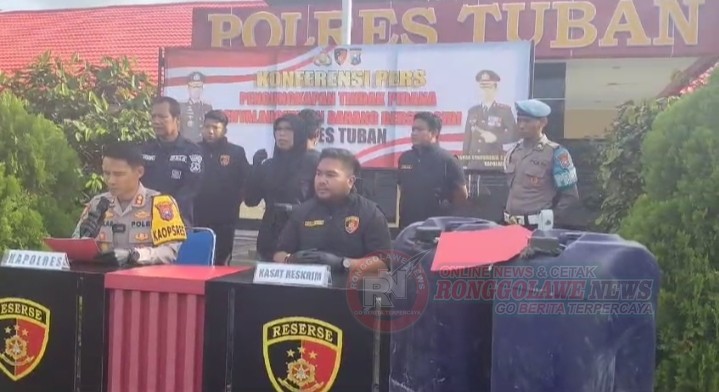 Polisi menahan pemilik BBM, Mulyono (31), warga Sugihan, Jatirogo Tuban dan Seorang lainnya dengan inisial N yang berhasil kabur, saat ini dalam pengejaran.